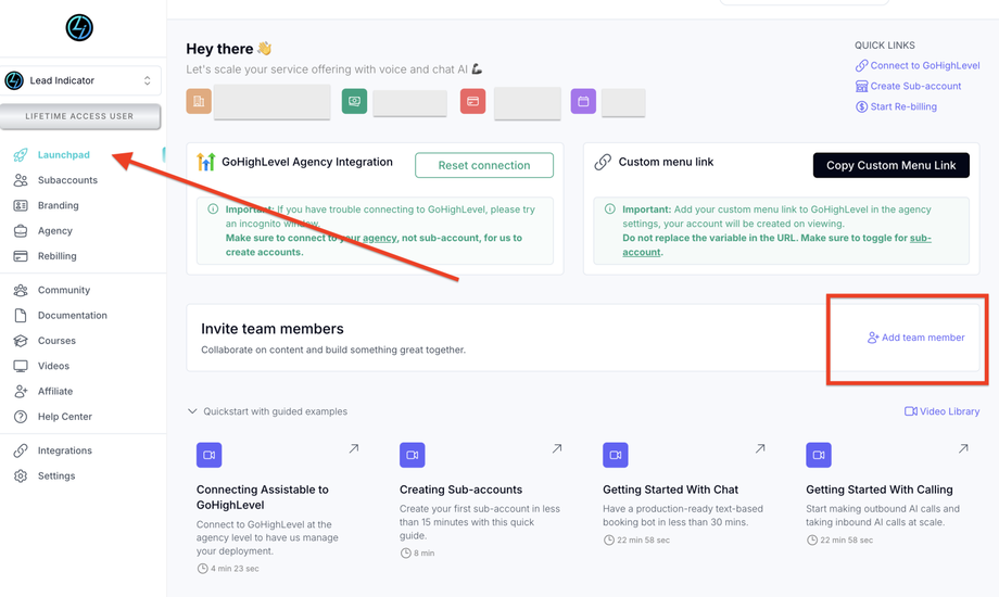 If you're using the Launchpad, you can also click “Add Team Member”.