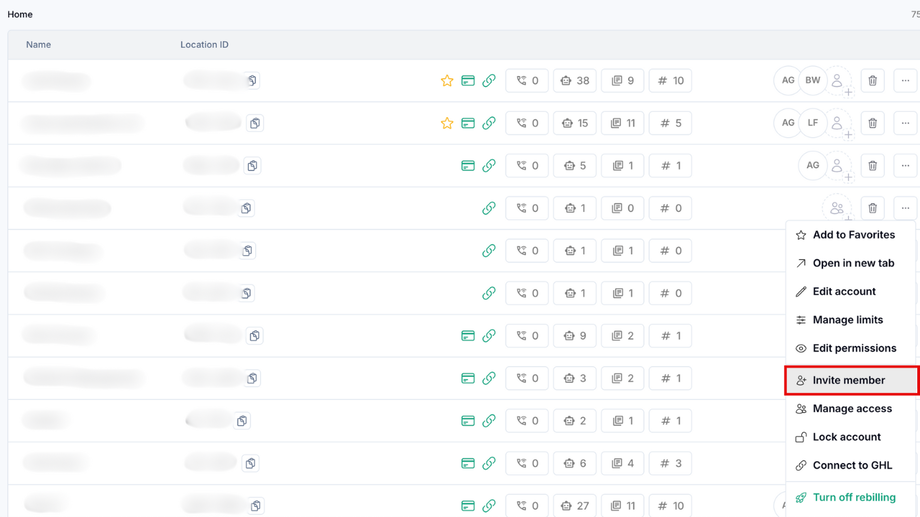 Before your client will be able to see their Billings settings or be able to set up their Wallets, they need to be Invited as a member to their Workspace. Simply go to your Agency Workspace, find their Sub-Account, select "Invite member" and send an invite to their email address.