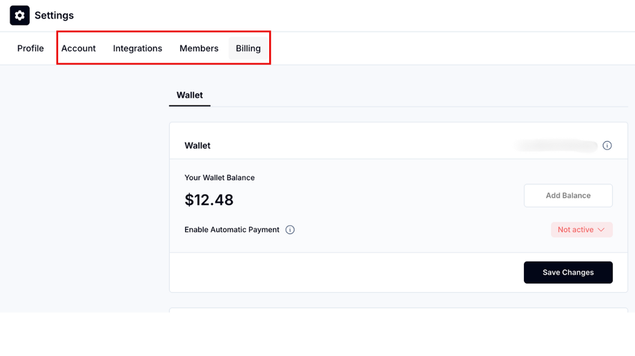 Once the user has been invited as a member to the workspace, they will have access to a new set of menus inside of their workspace where they were will be able to set up their Billing and their wallet. If they want someone else to be able to view these menus, they need to be added to the workspace.