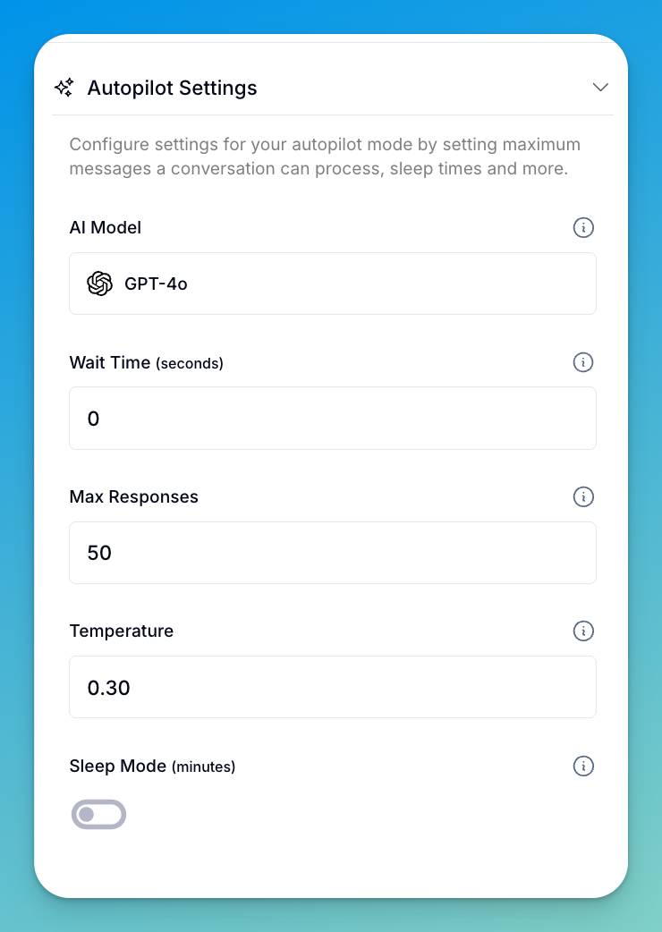 You can also enable "Sleep Mode" so that your AI will turn off for a pre-determined amount of time if the user sends a message. This prevents the AI from interjecting if the user would like to have real human interaction with one of their leads/clients.