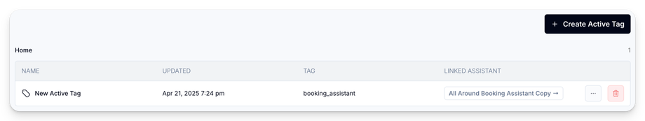 For each Active Tag, you will give the tag a name, create the tag itself, and then link it to an Ai Assistant.