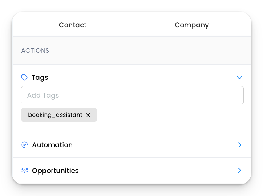 You can use these tags dynamically—meaning if you’ve already added them into workflows, you can simply reassign which assistant is tied to a tag without needing to redo your automation setup.