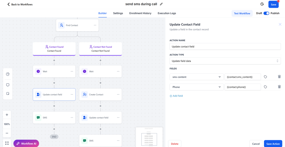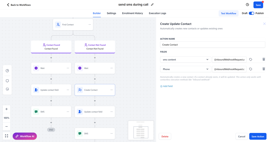Result: The AI Assistant can now respond in real-time to SMS requests during calls, sending links or information via text and optionally logging the interaction for future reference.