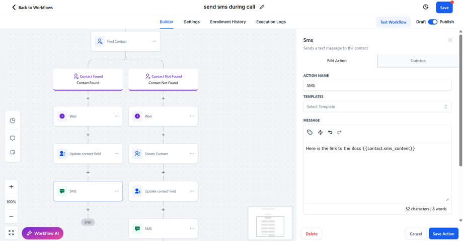 Step 4: Link the Automation to SMS Sending Action- Guide to the workflow